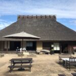 藍那駅から急坂の集落を登り切ると雑木林の向こうに茅葺き民家のある「あいな里山公園」が現れます。